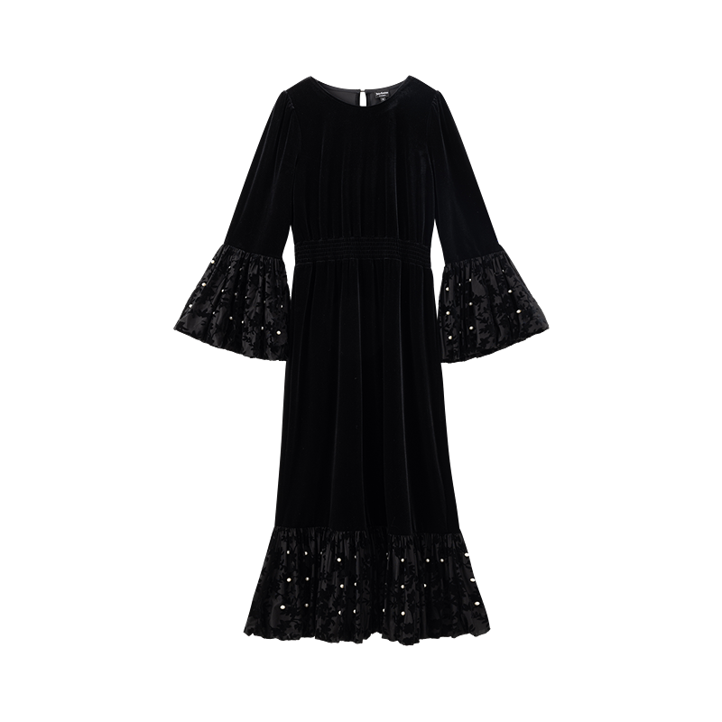 JUICY COUTURE 橘滋连衣裙女黑色高级法式丝绒长裙不负韶华