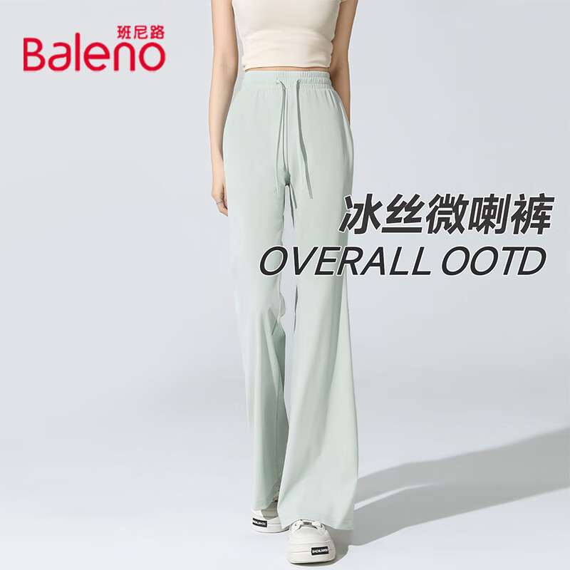 旗舰店班尼路BALENOS&K系列裤子女夏季新款防晒冰丝凉感长裤休闲微喇垂感直筒阔腿裤 灰绿#纯色 L