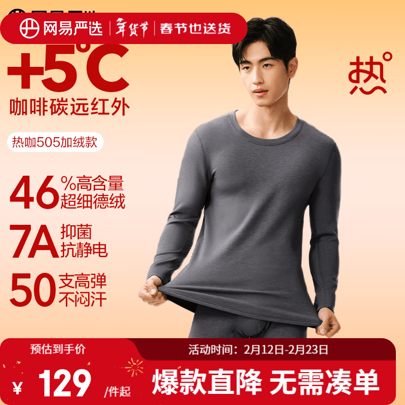 旗舰店网易严选热咖505PRO加绒加厚保暖内衣46%德绒咖啡碳7A抗菌230g秋衣秋裤 A款7A抑菌-冷杉灰-男 2XL
