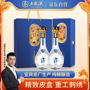 自营五粮液股份 年货送礼 万事如意人和福 纯粮浓香型白酒礼盒52度500ml*2瓶
