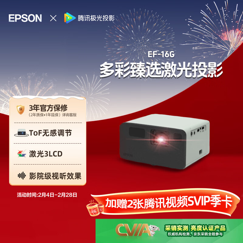 自营爱普生(EPSON)EF-16G 家用投影仪 3LCD智能激光投影机(0.62”大芯片 激光 原生1080P 3LCD技术)国家补贴