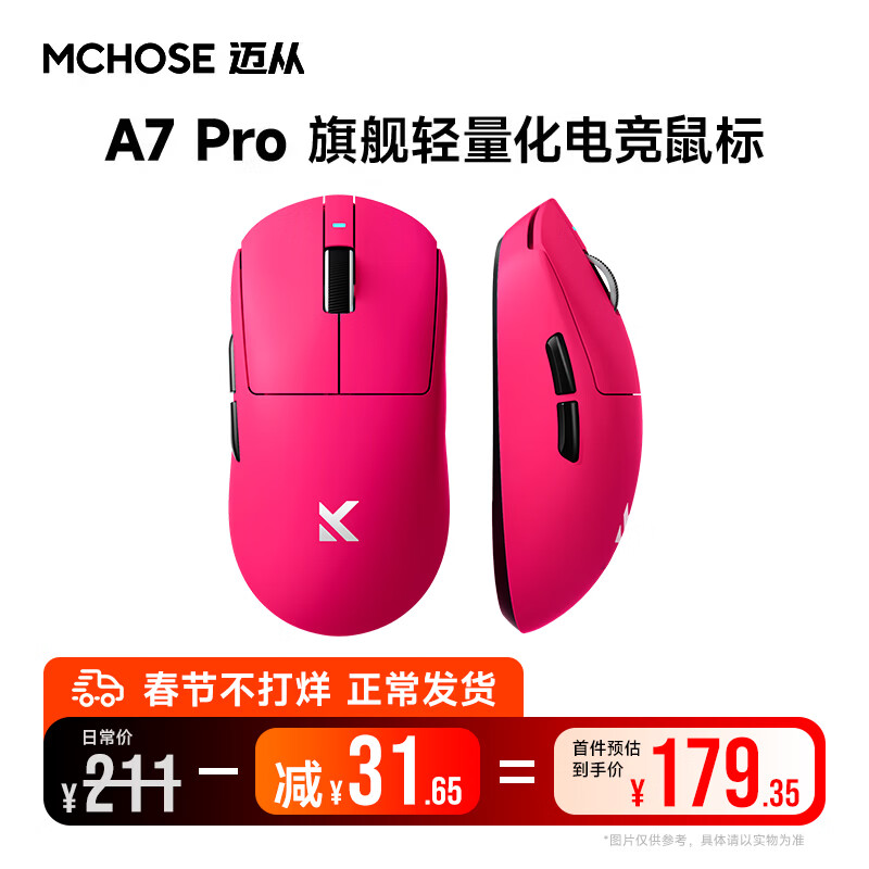旗舰店迈从(MCHOSE)A7 V2轻量化无线鼠标全能旗舰磁吸无线充游戏电竞办公神鼠三模连接PAW3950/3395人体工学 A7 Pro 浆果红