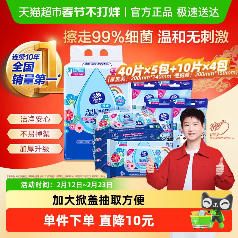 百亿补贴【下拉享优惠】维达多巴胺湿厕纸家庭随身装组合纯水0添加可冲水
