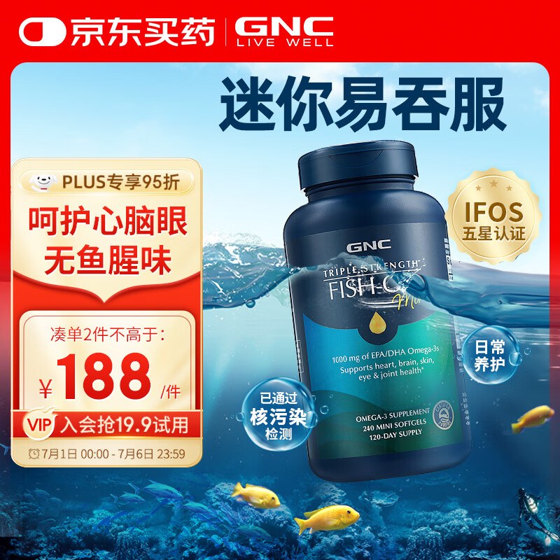 自营GNC健安喜三倍深海鱼油omega-3软胶囊dha epa降血脂补脑 240粒
