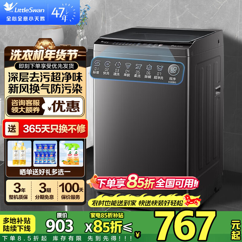 旗舰店小天鹅(LittleSwan)波轮洗衣机 全自动家用大容量租房神器 一级能效变频节能省水抗菌除螨 高洗净比强力去污 以旧换新 25年新品8KG|超强去污渍|租房神器