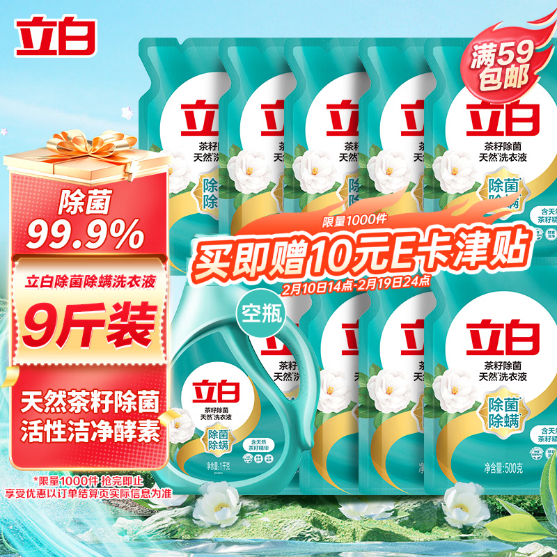 自营立白天然茶籽洗衣液 9斤 除菌除螨抑菌 手洗机洗 祛味去渍 全袋装