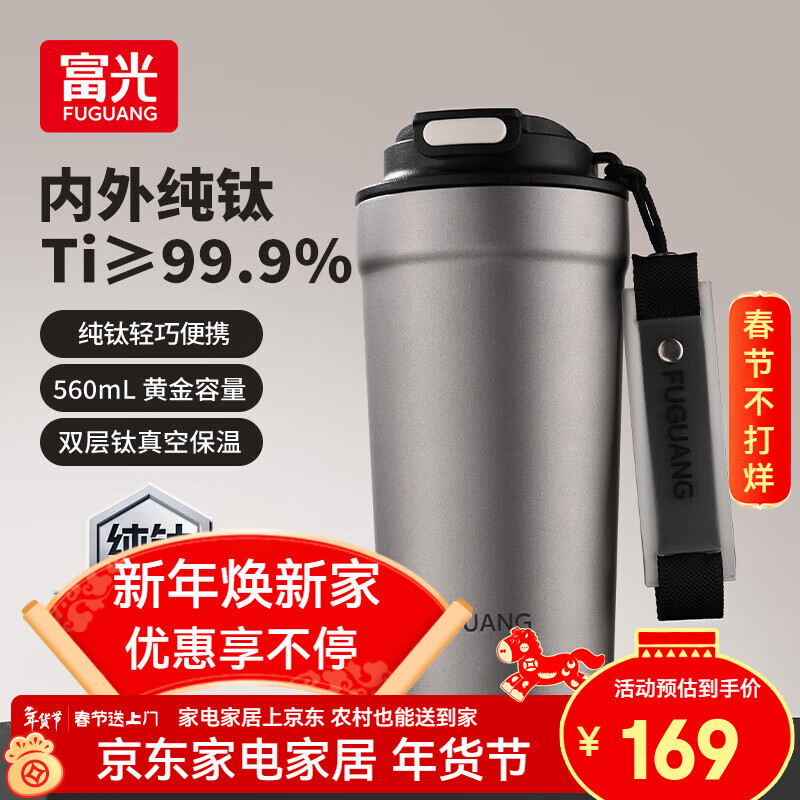 旗舰店富光纯钛保温杯钛咖啡杯大容量高档商务钛杯便携车载双饮随行水杯子 太空灰560ml【内外纯钛+一盖双饮】