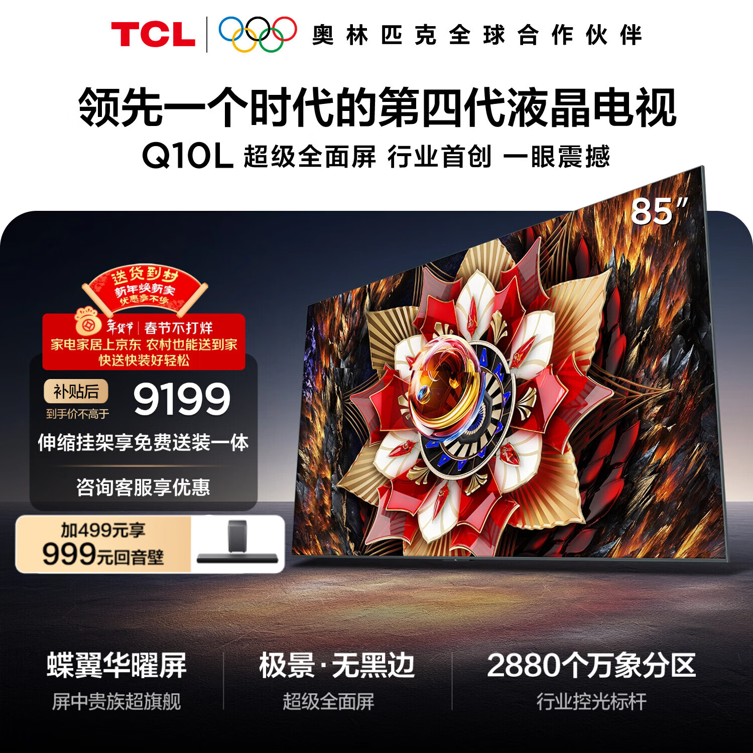 自营TCL 85Q10L 包安装版【伸缩挂架送装一体】85英寸 极景QD-Mini LED电视 Q10L 国家补贴