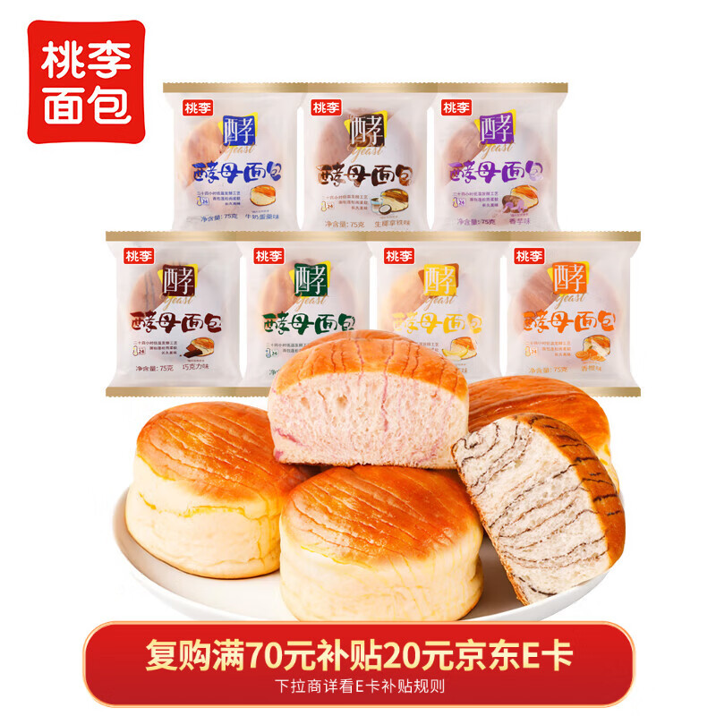 自营桃李酵母面包7味混合组合525g早餐手撕面包下午茶点心零食整箱