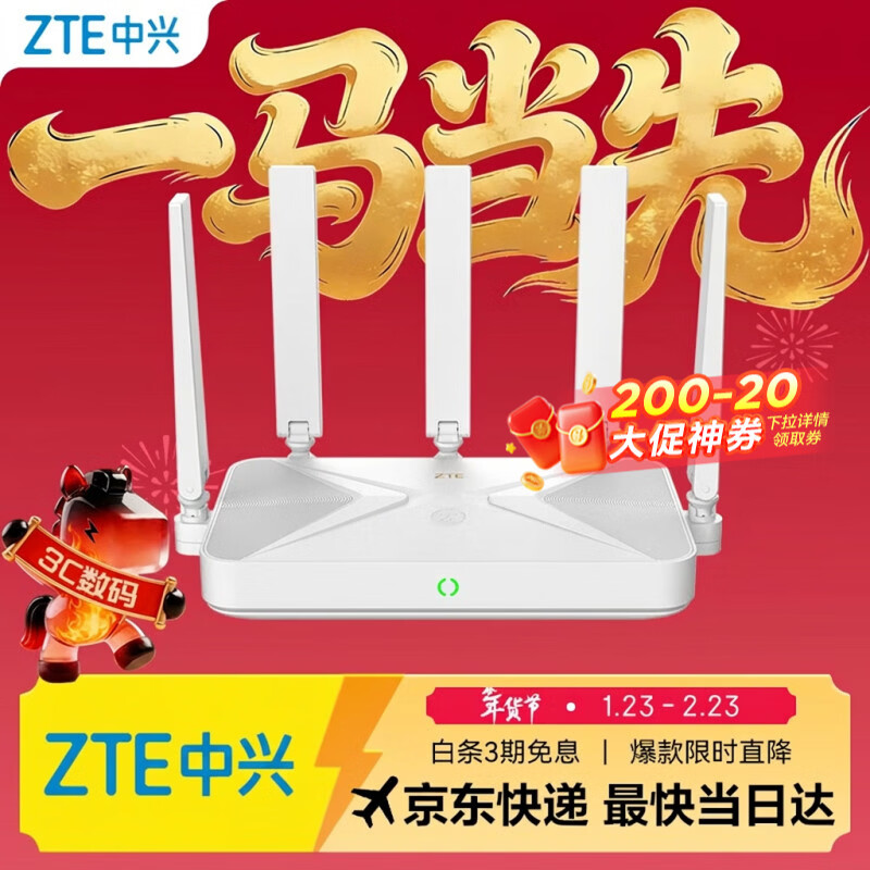 自营中兴(ZTE)巡天BE5100无线家用wifi7路由器 自研10核芯片 千兆双频5颗信号放大器穿墙王游戏加速