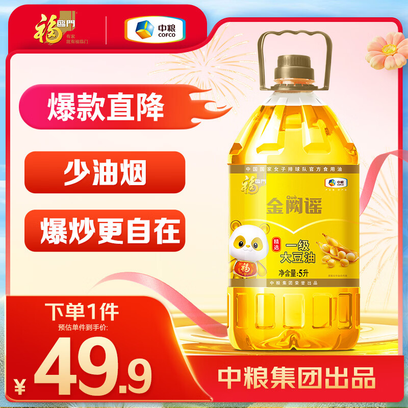 自营福临门 【东哥同款】 金阙谣 食用油 物理压榨非转基因精选菜籽油5L