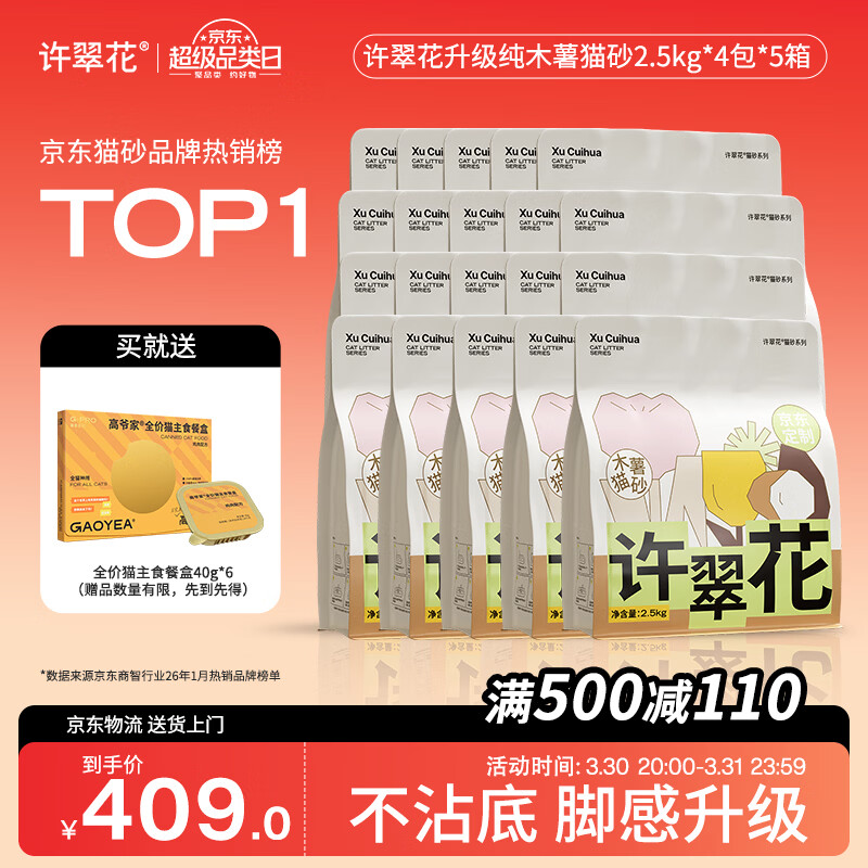 自营许翠花 经典升级纯植物猫砂2.5kg*4包*5箱【囤货装】