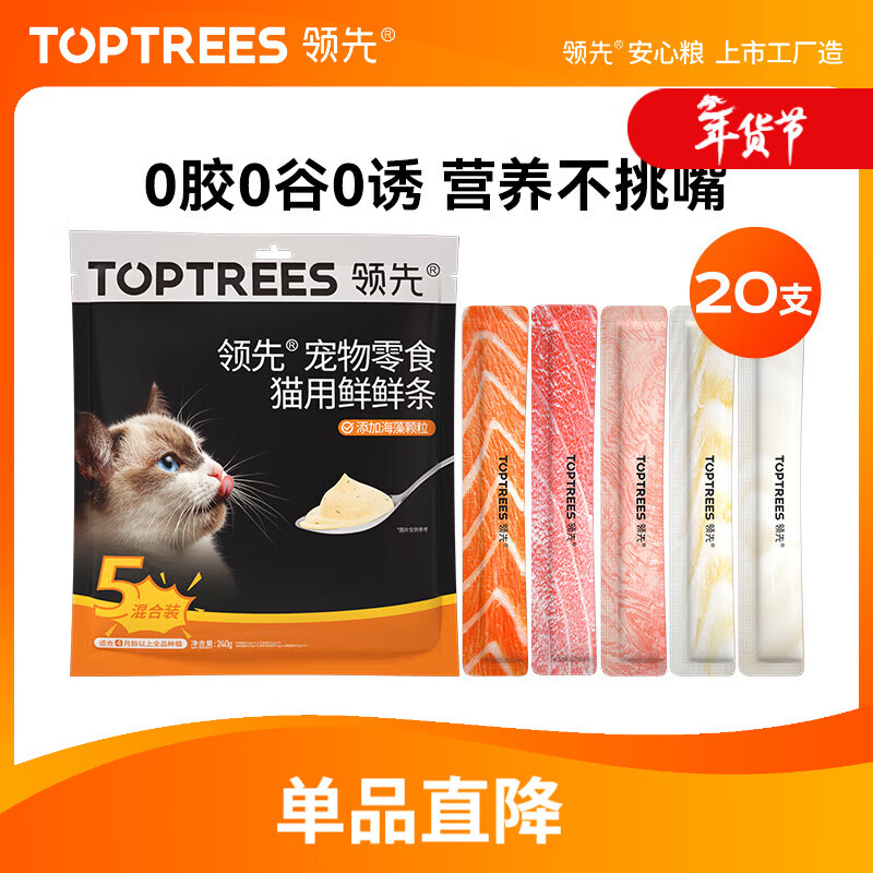 自营领先猫咪零食猫条湿粮罐头0胶0谷0诱混合口味12g*20条