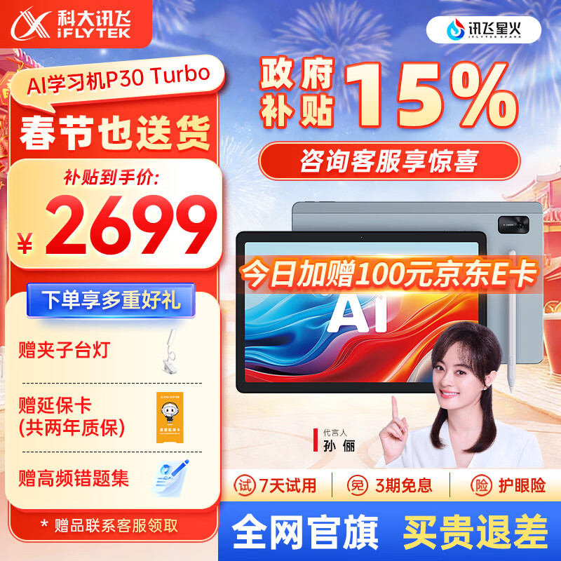 自营科大讯飞人工智能学习机P30 Turbo AI 1对1精准学 护眼平板 启蒙到提优 全科高效学 【全国补贴】