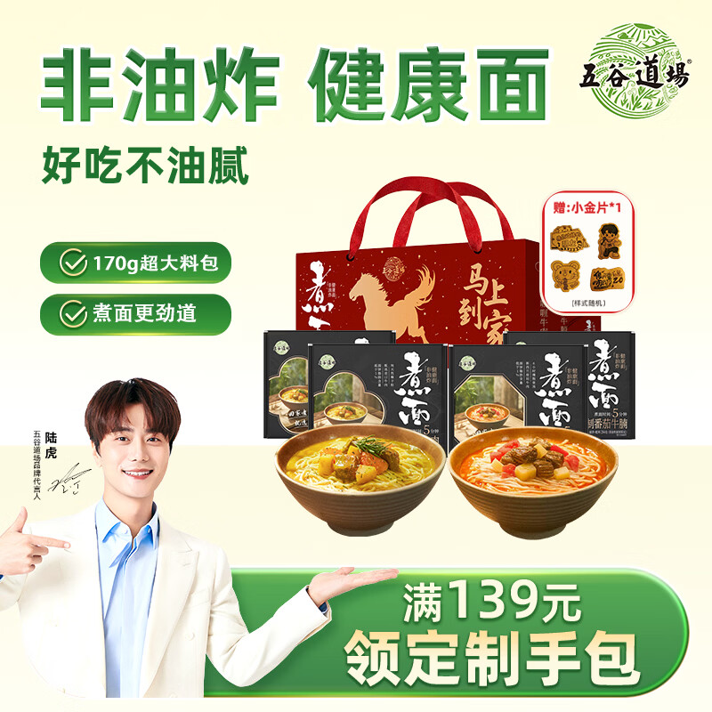 自营五谷道場有料煮面方便面非油炸 1106g送礼特色面条早餐含汤料包混合口味