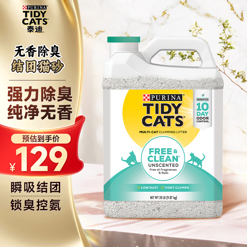 自营泰迪 TIDY CATS 无香除臭结团猫砂20磅9.07kg 美国进口膨润土猫沙