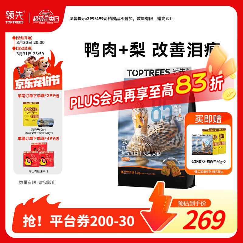 自营领先低温烘焙狗粮鸭肉梨清火配方中大型犬成犬金毛萨摩耶5.4kg