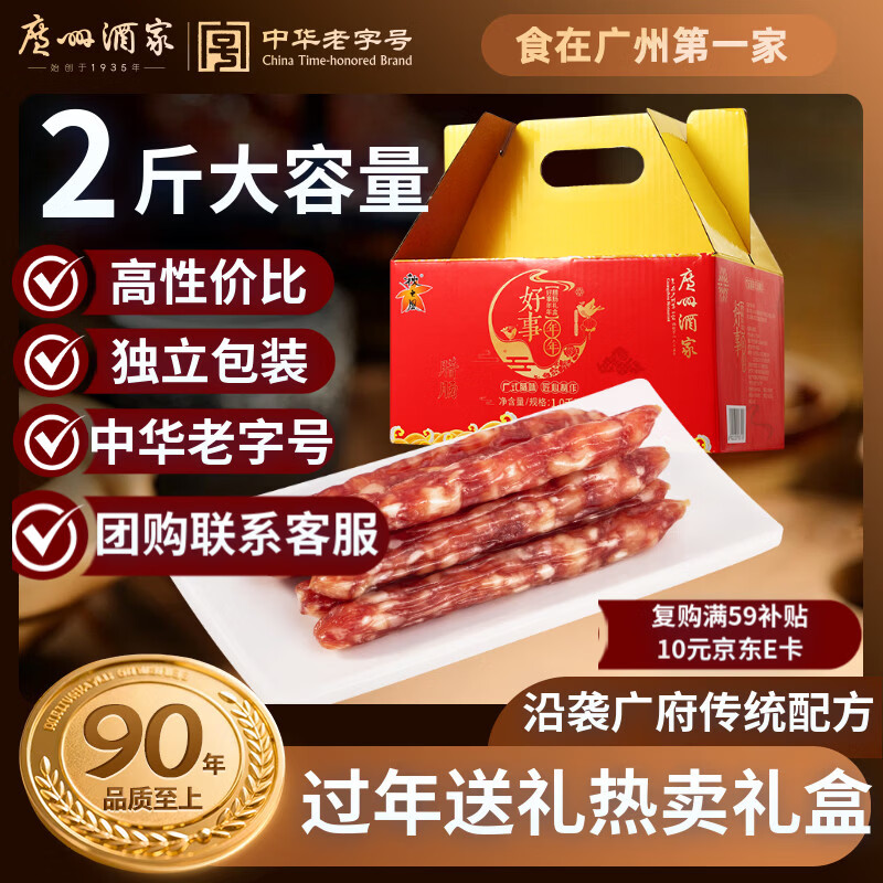 自营广州酒家好事年年腊肠礼盒1kg 2斤独立装广式特产腊味年货纯肉礼盒送礼