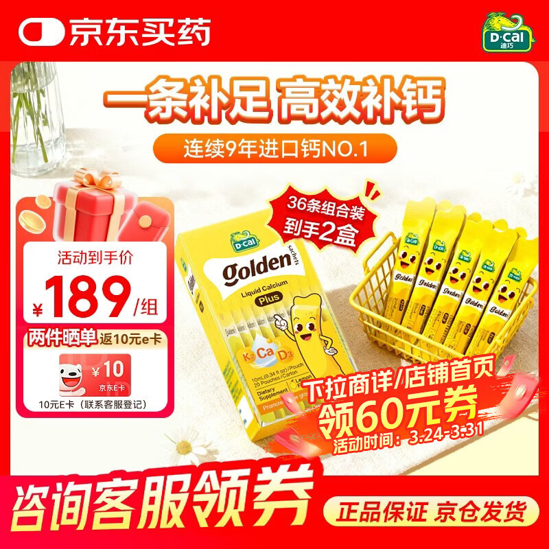 旗舰店迪巧【春季补钙】迪巧液体钙小黄条plus幼儿补钙0-12岁柠檬酸钙D3+K2 小黄条PLUS-组合装2盒- 10ml*36包