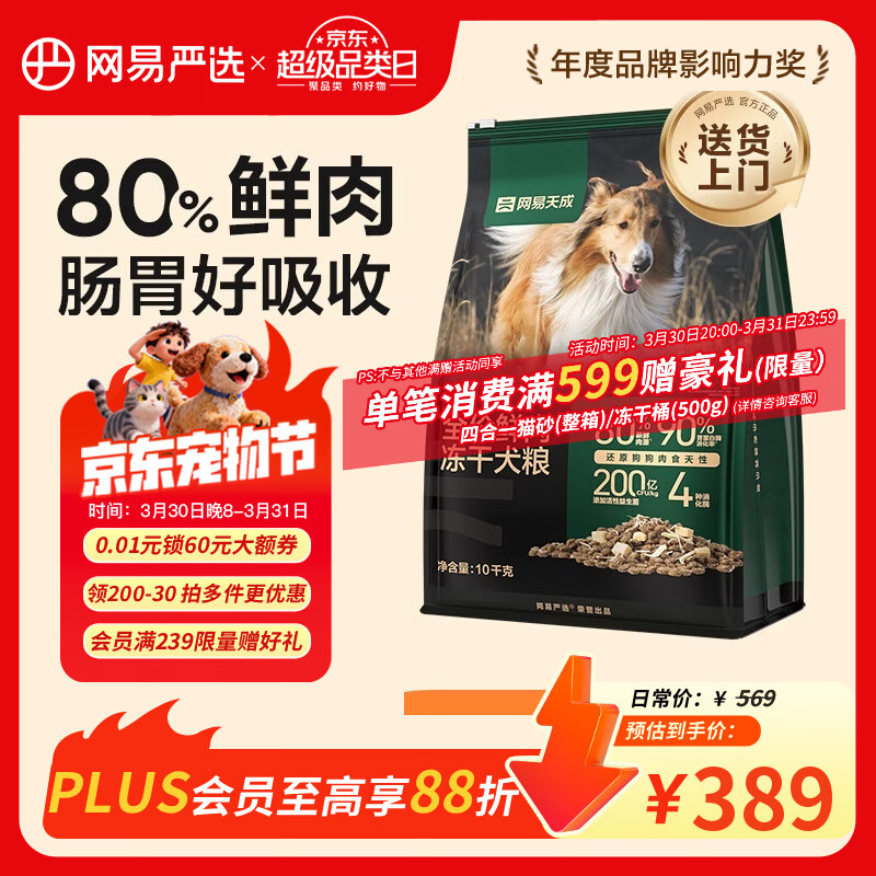 自营网易严选犬粮 全价高鲜肉冻干双拼幼犬成犬中大型狗粮通用 10kg