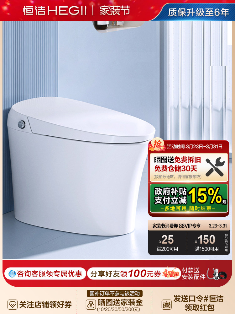 旗舰店HEGII恒洁智能马桶全自动感应冲水电坐便器家用卫浴小户型
