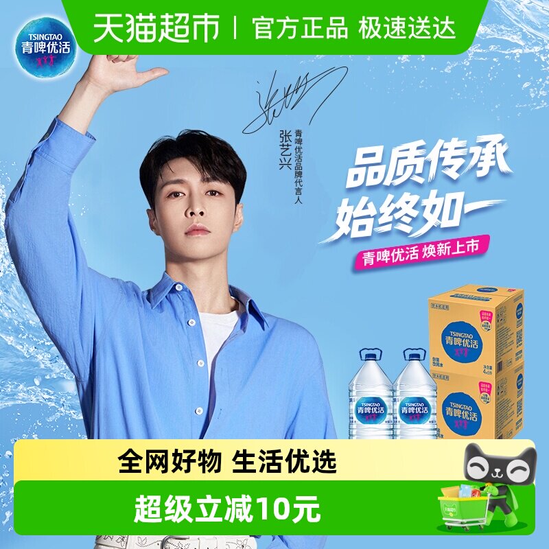 青啤优活 饮用水非矿泉水桶装水 5Lx4桶/箱x2箱家庭量贩