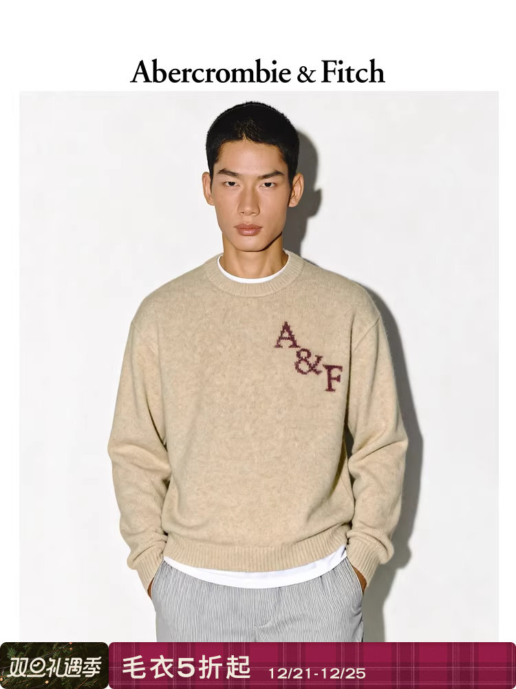 旗舰店【经典LOGO】AF美式绒感保暖毛衣针织衫25秋冬男装120-5181圣诞